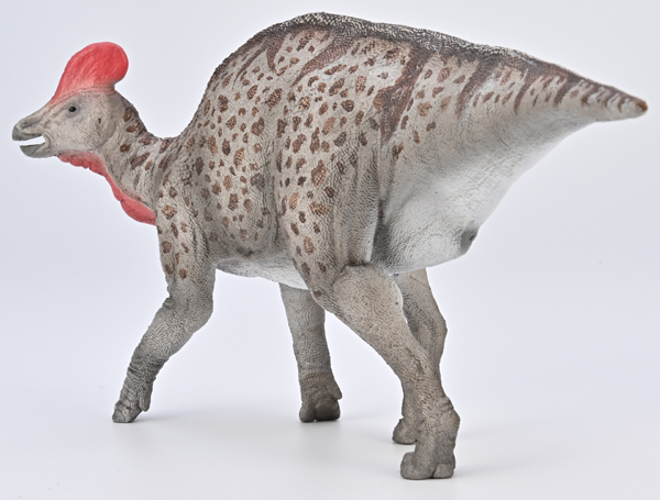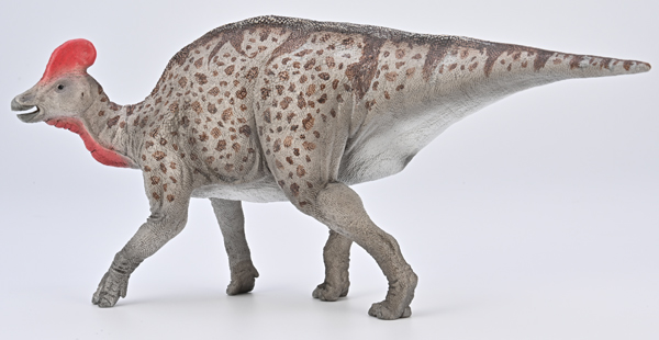 The new for 2026 CollectA Magnapaulia has a bright red head crest. Although the shape of the head crest is not known, the shape chosen by CollectA is a fairly accurate interpretation of the crest shape based on comparisons with other lambeosaurines. Furthermore, the crest shape mirrors the crest shape of the sister taxon Velafrons.