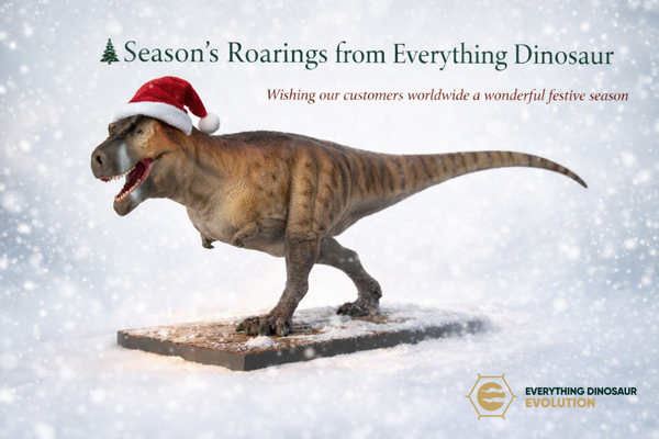 As the holiday season arrives, Sue and I at Everything Dinosaur would like to say a heartfelt thank you. Firstly, we thank all our customers and social media followers for your amazing support over the last twelve months. Secondly, a very special thank you to all the amazing people who helped us develop the Everything Dinosaur Evolution T. rex. This year (2025) has been a truly special year. We are now a multi-awarding-winning company. Furthermore, we launched our first dinosaur model. We have created a festive T. rex image.
