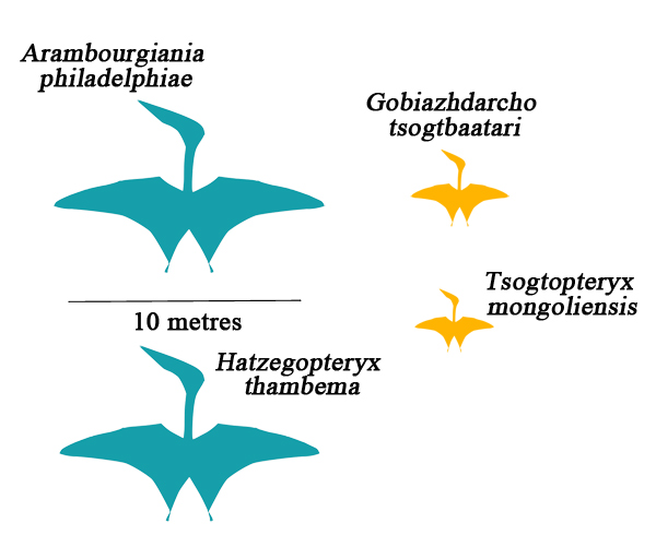 Azhdarchid pterosaur fossils lead to the naming of two new taxa. The two new Mongolian taxa are compared to two of the largest azhdarchid pterosaurs. Picture credit: Everything Dinosaur.