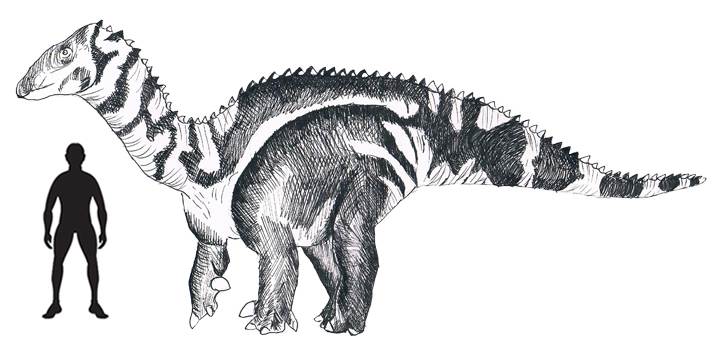 This ornithopod was formally named and described in 1999 (Taquet and Russell). Whilst its size remains open to debate, most size estimates for this taxon range between seven and nine metres. Size estimates are based on the holotype skeleton described by the researchers in 1999. The preserved bones indicate an animal roughly comparable in length to a modern African elephant. Its shortened, sturdy limbs and broad ribcage suggest a slow-moving, quadrupedal herbivore adapted for supporting great body weight. It might have weighed between three and six tonnes.